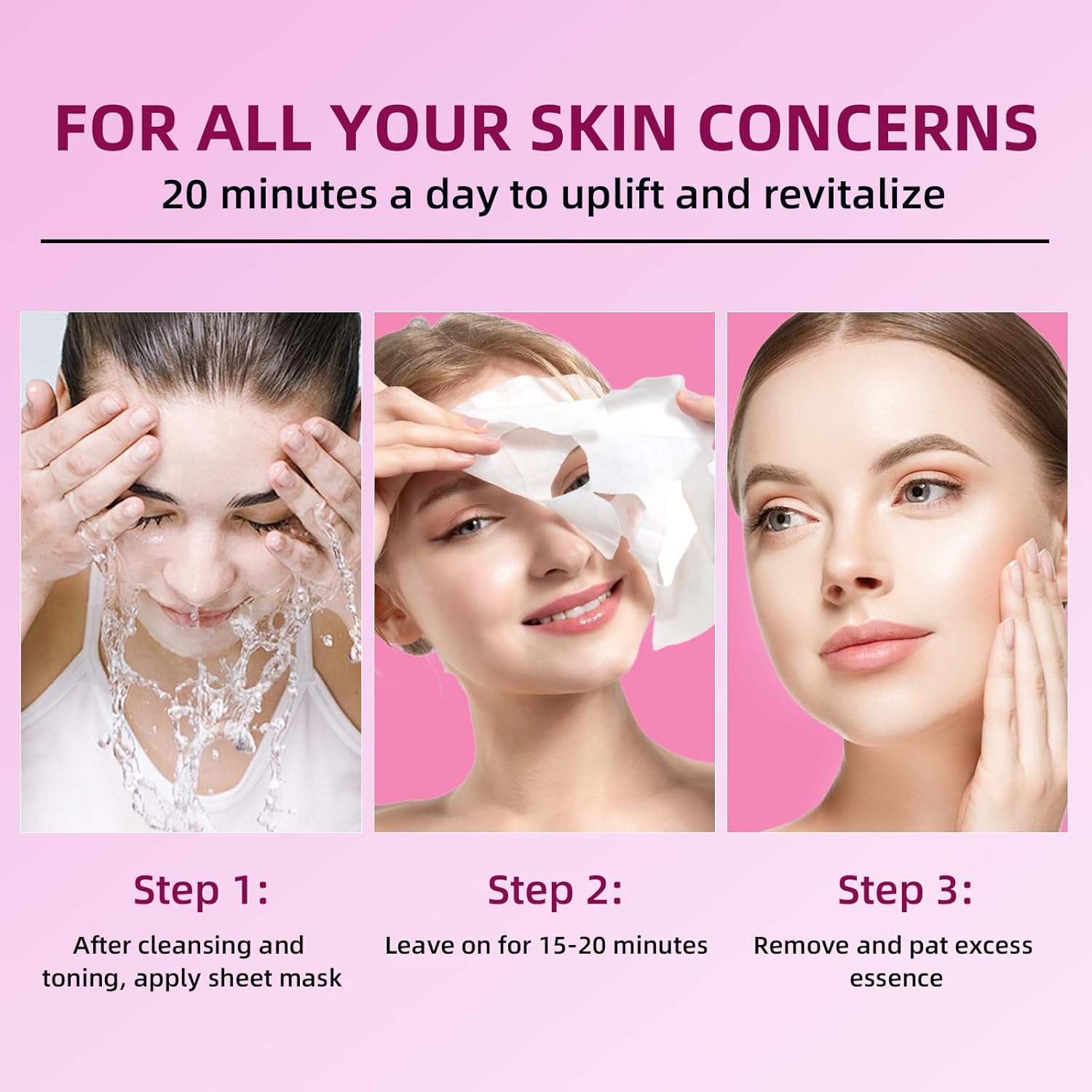 - EASY TO USE HYDRATING MASK SHEETS: Ensure you wash your face thoroughly and take out the mask sheet. Apply it around your nose, eyes, and lips to make it adhere to the skin. You can leave for at least 15-20 minutes before removing it. Pat the remaining essence into the skin for full absorption. Then go on your daily skincare. A fresher, softer, more hydrated look in just 15 minutes.